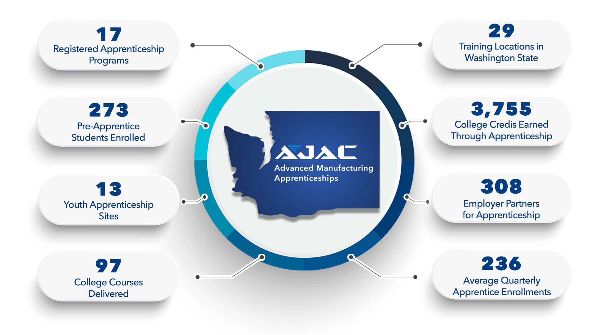 AJAC is Washington State’s largest registered apprenticeship training organization for advanced manufacturing, training nearly 80% of all Washington State registered manufacturing apprentices.